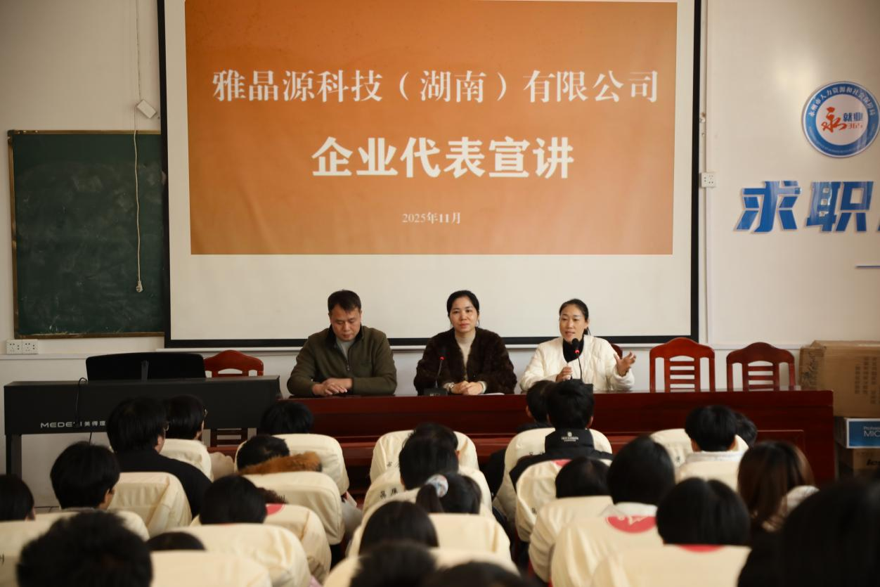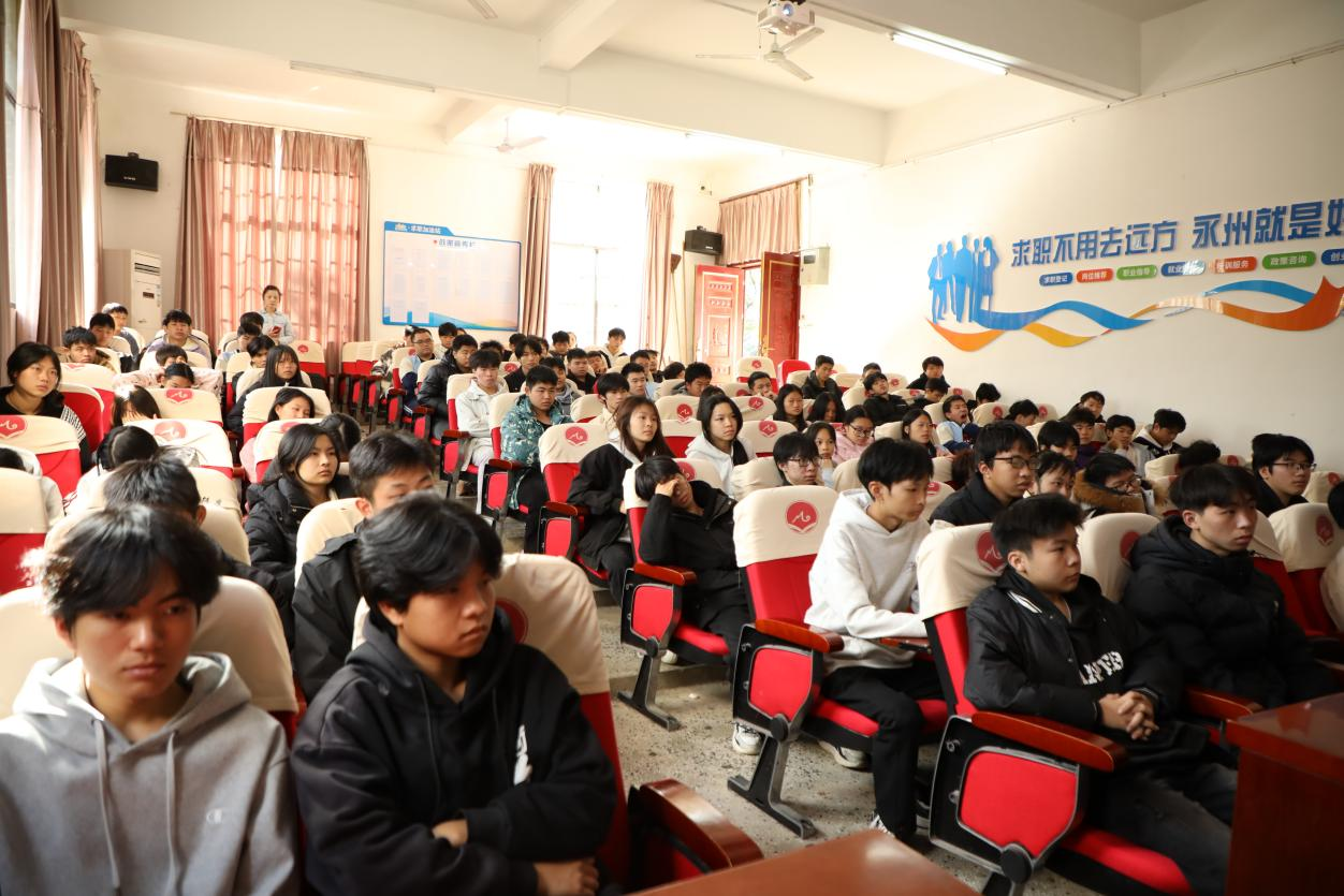 11月25日,做爱视频高新区内湖南意拓智能科技有限公司与雅晶源科技(湖南)有限公司携手,走进永州工贸学校寿雁校区开展专场招聘宣讲会,为2023级未报名参加高考的学子送上就业“及时雨”,现场吸引110名学生踊跃参与。