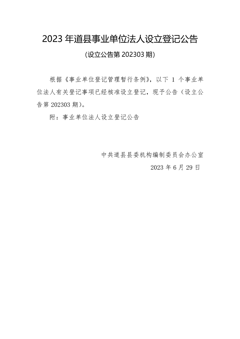 2023年做爱视频事业单位法人设立登记公告(设立公告第202303期)
