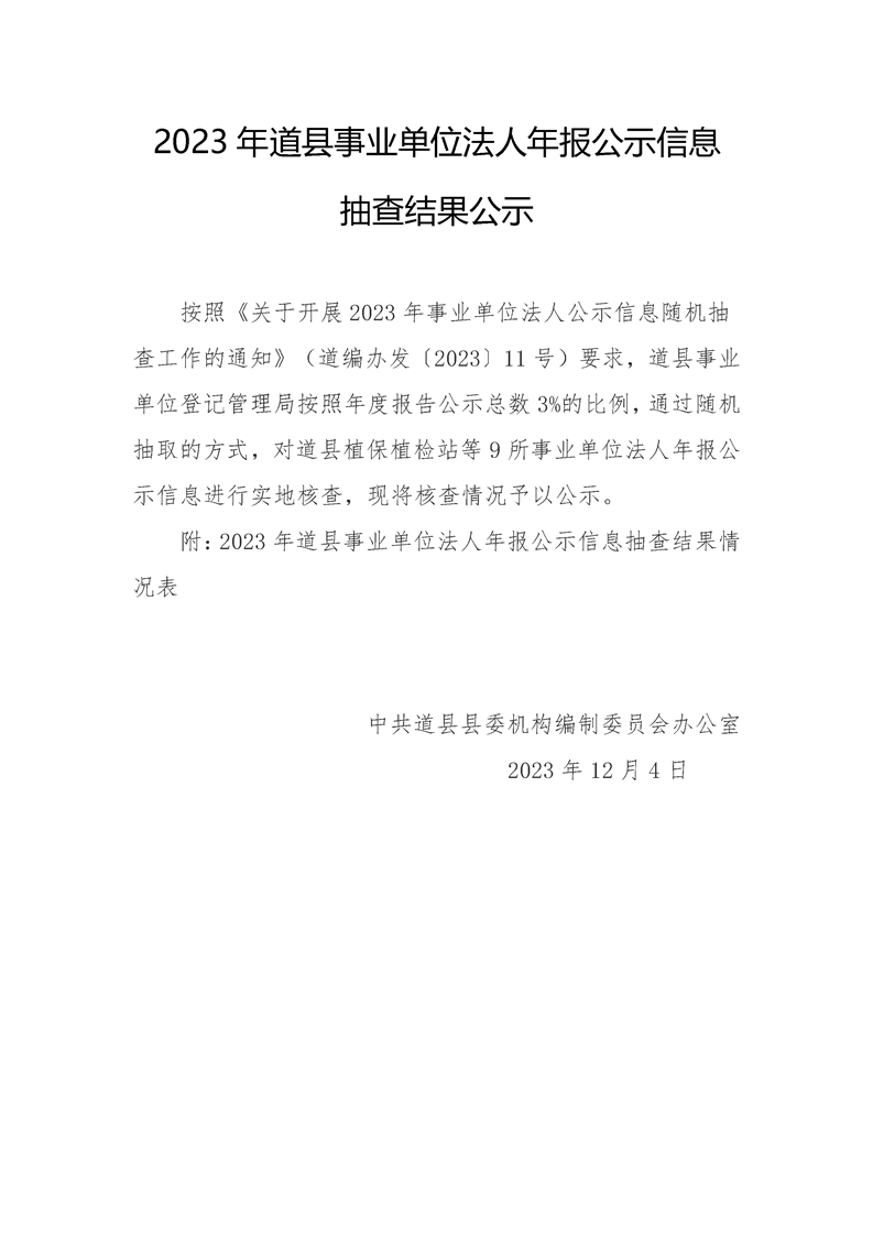 2023年做爱视频事业单位法人年报公示信息抽查结果公示