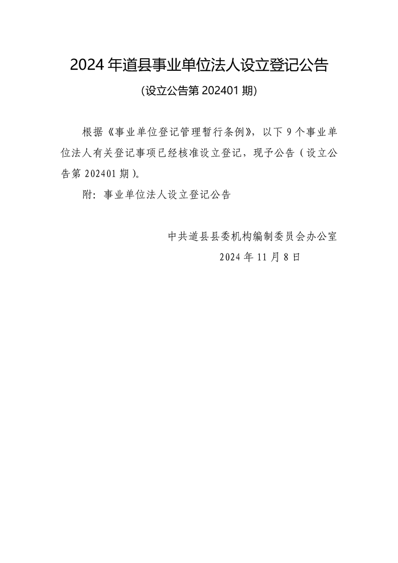 2024年做爱视频事业单位法人设立登记公告(设立公告第202401期)