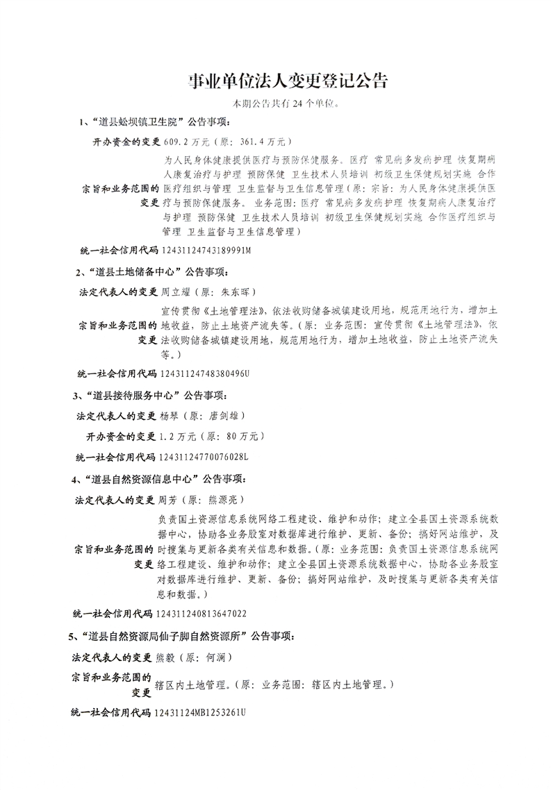 2024年做爱视频事业单位法人变更登记公告(变更公告第202403期)