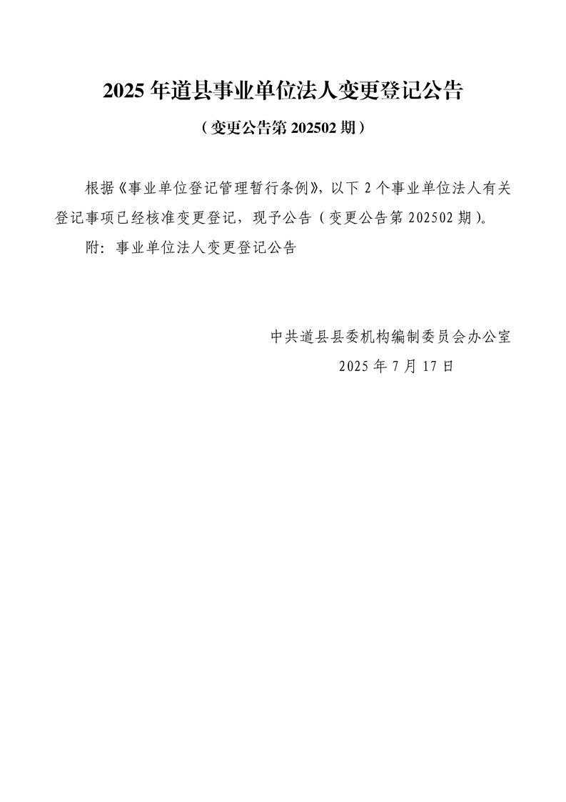 2025年做爱视频事业单位法人变更登记公告(变更公告第202502期)