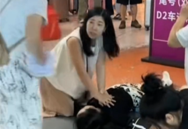 据成琳回忆,事发当天她正在网约车等候区排队候车,突然听到“砰”的一声,紧接着,一阵急促的哭喊传入耳中,她循声望去,只见一名女士面朝下摔倒在地,身体还在不停抽搐,意识不清、牙关紧闭,场面十分危急。