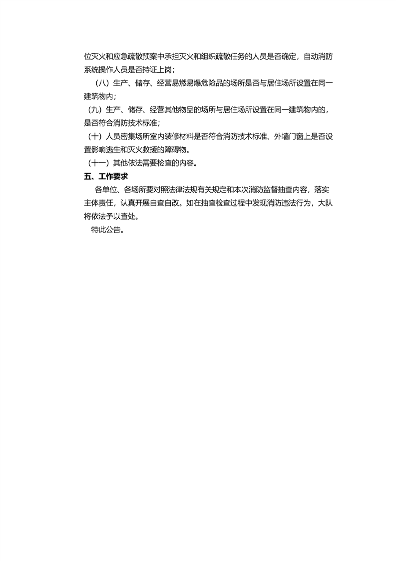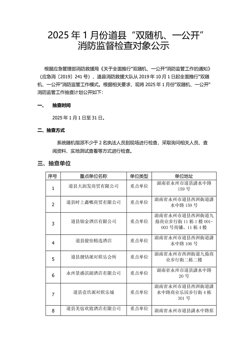 2025年1月份“双随机、一公开”消防监督检查对象公示