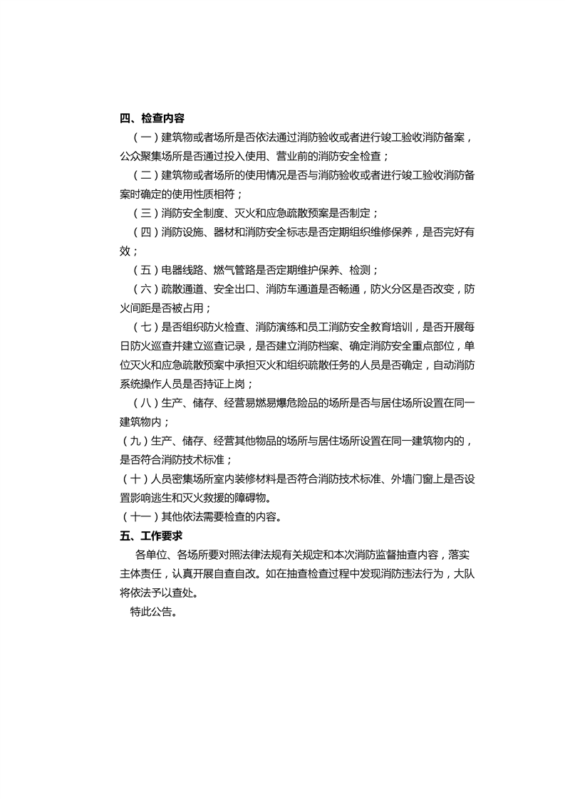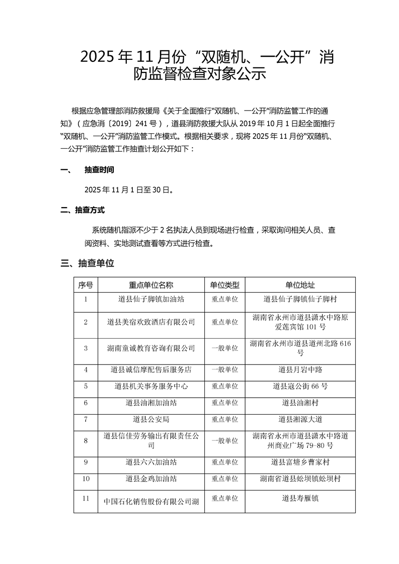 2025年11月份“双随机、一公开”消防监督检查对象公示