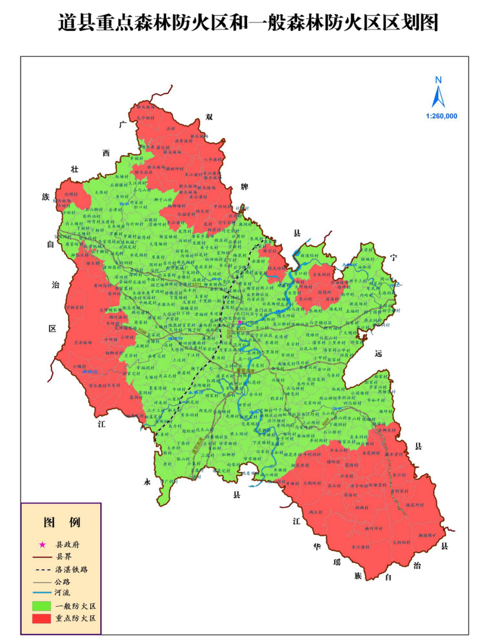 县域内重点森林防火区以外的森林防火区均为一般森林防火区。