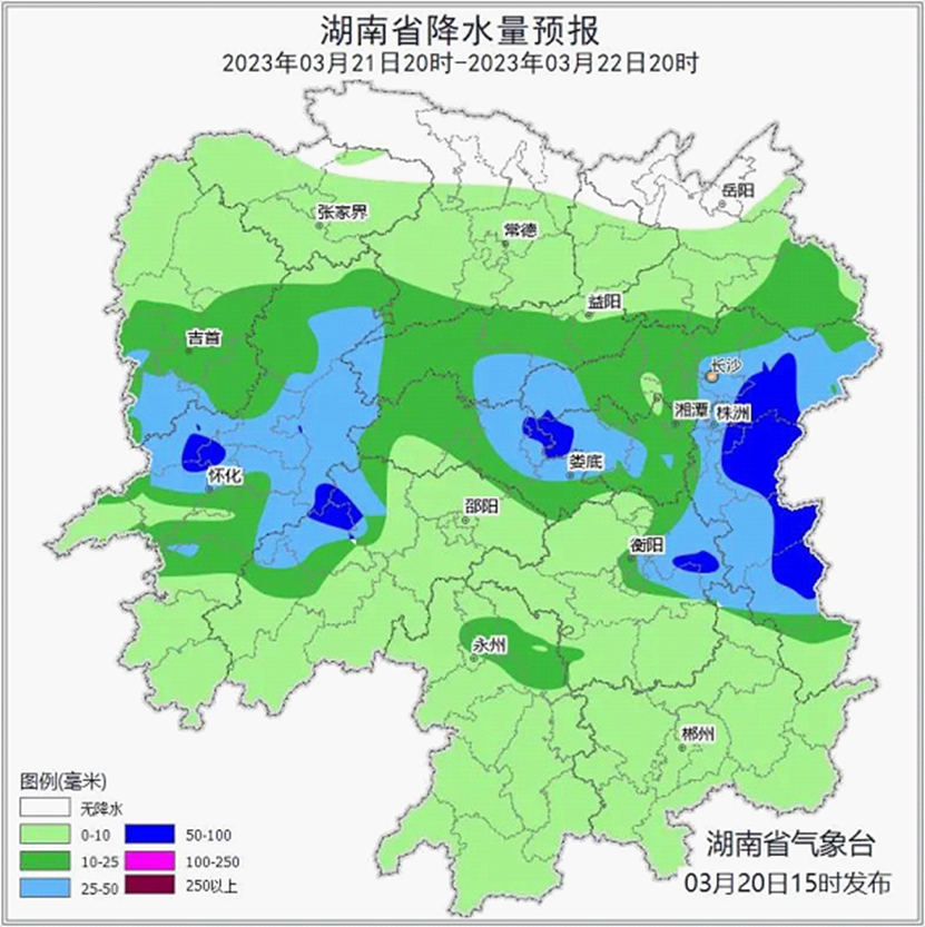 2120时至2220全省阴天有小到中等阵雨或雷阵雨其中湘西州南部、怀化中北部、长沙、湘潭西部、娄底东部、株洲、衡阳东部部分地区大雨麻阳、芷江、怀化市区、溆浦、隆回、洞口、娄底市区、湘乡、衡东、株洲市区、茶陵、攸县、醴陵、浏阳暴雨北风34雷雨时局地阵风7最高气温湘南2325℃湘西1517℃其他地区1719℃最低气温湘南1517℃其他地区1012℃