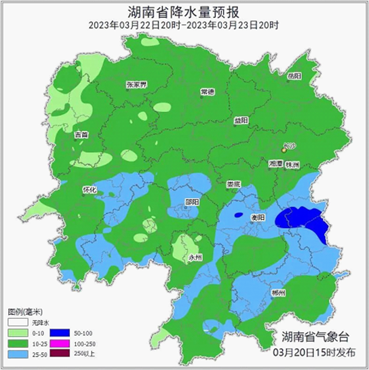 2220时至2320全省阴天有小到中等阵雨或雷阵雨其中湘中、湘南部分地区大雨衡阳县、衡东、攸县、茶陵暴雨北风34雷雨时阵风7最高气温湘西、湘北1517℃,其他地区1719℃最低气温湘西、湘北912℃其他地区1315℃