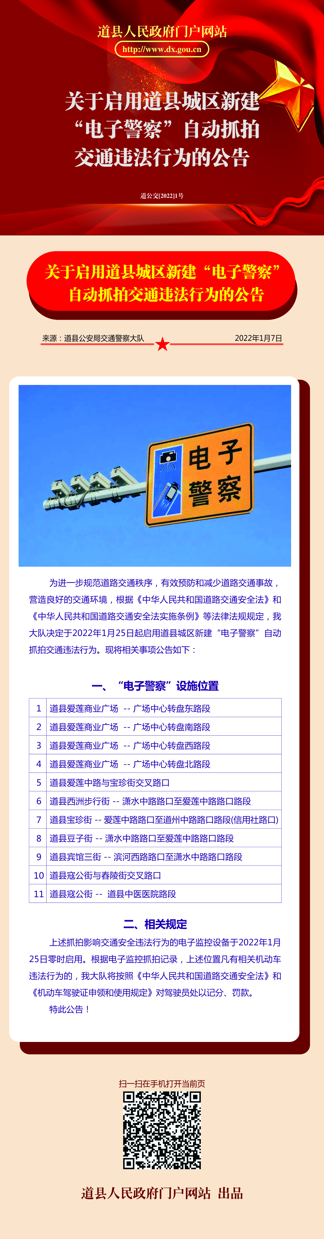 关于启用做爱视频城区新建“电子警察”自动抓拍交通违法行为的公告
