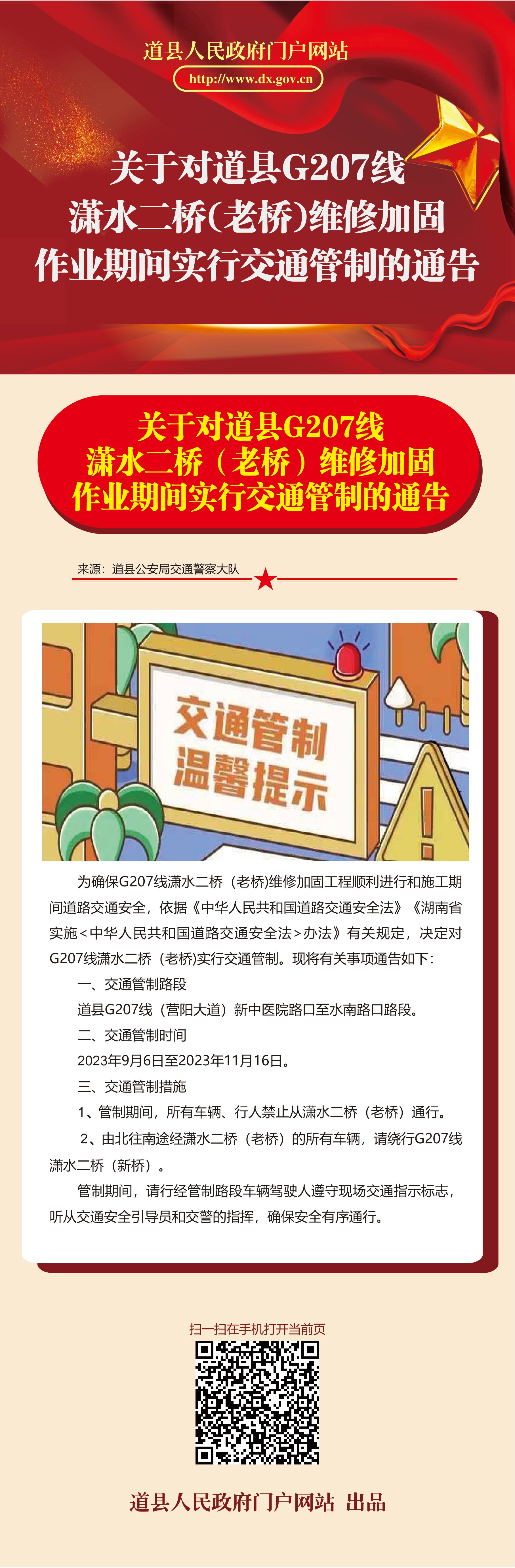 图解 关于对做爱视频G207线潇水二桥(老桥)维修加固作业期间实行交通管制的通告