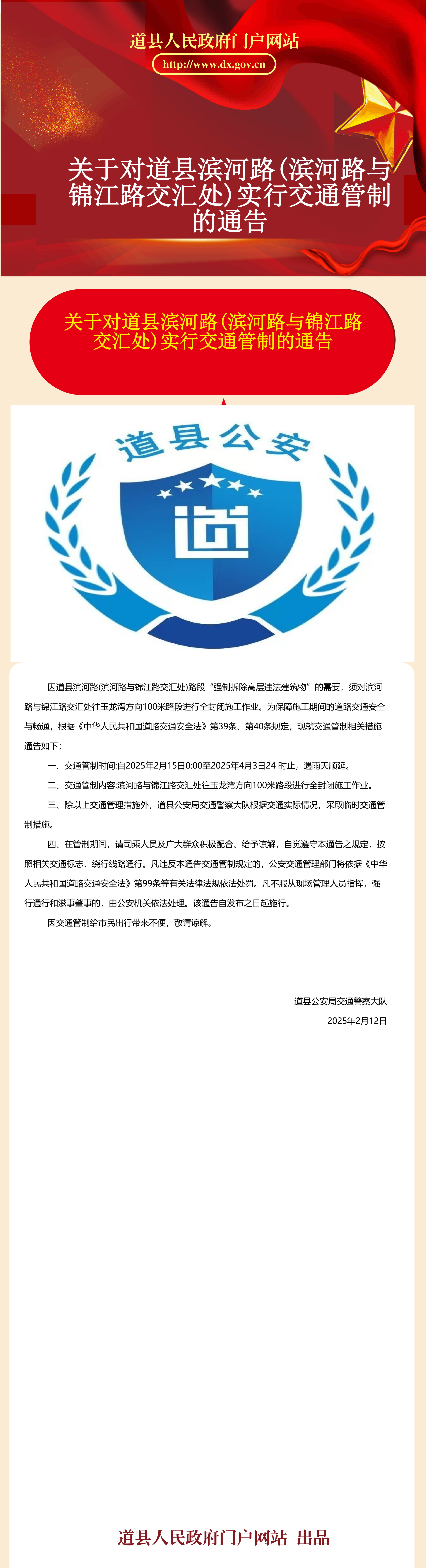 关于对做爱视频滨河路(滨河路与锦江路交汇处)实行交通管制的通告