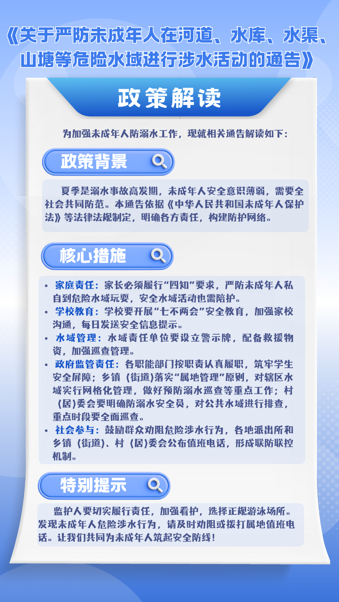 《关于严防未成年人在河道、水库、水渠、山塘等危险水域进行涉水活动的通告》政策解读