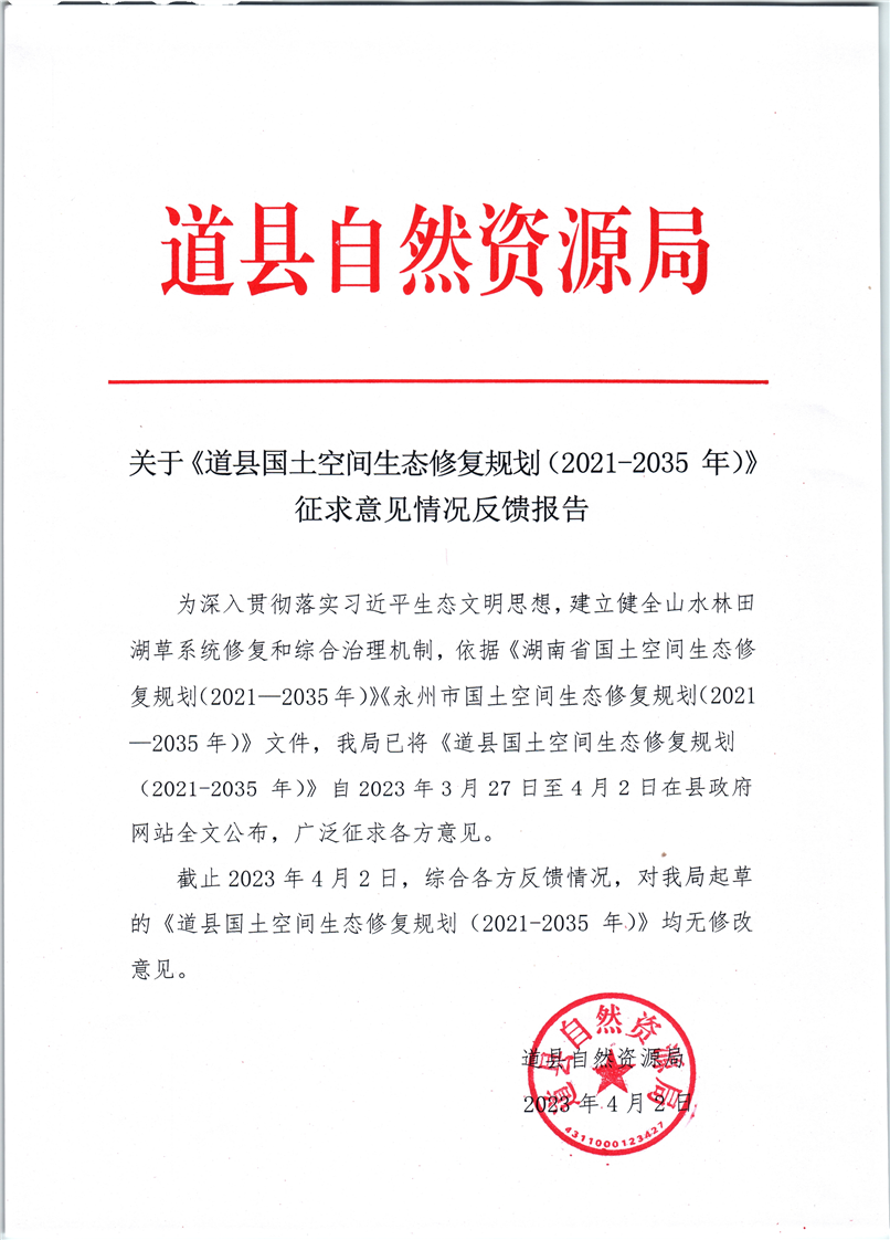 关于《做爱视频国土空间生态修复规划(2021-2035年)》征求意见情况反馈结果