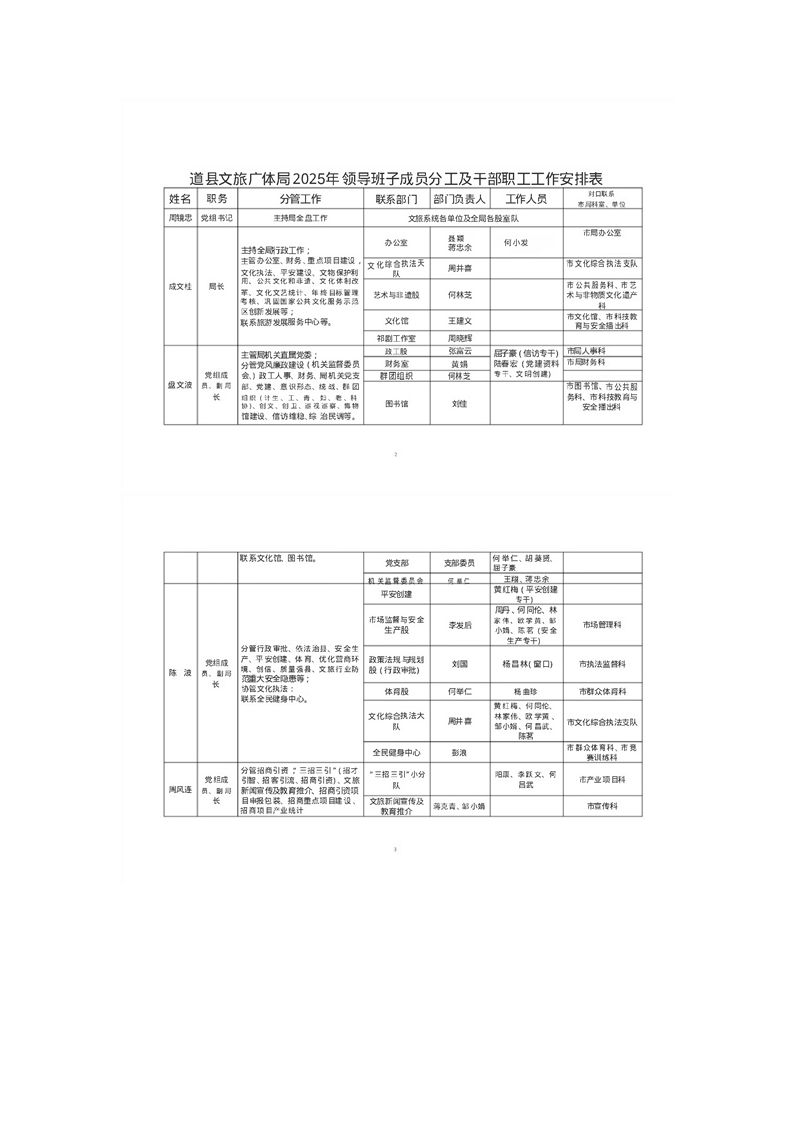 做爱视频文旅广体局领导班子成员分工及干部职工工作安排表