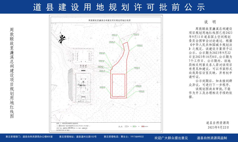 周敦颐故里濂溪总祠建设项目规划用地红线图批前公示
