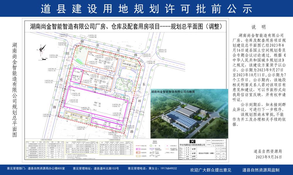 湖南尚金智能智造有限公司厂房、仓库及配套用房项目规划许可批前公示