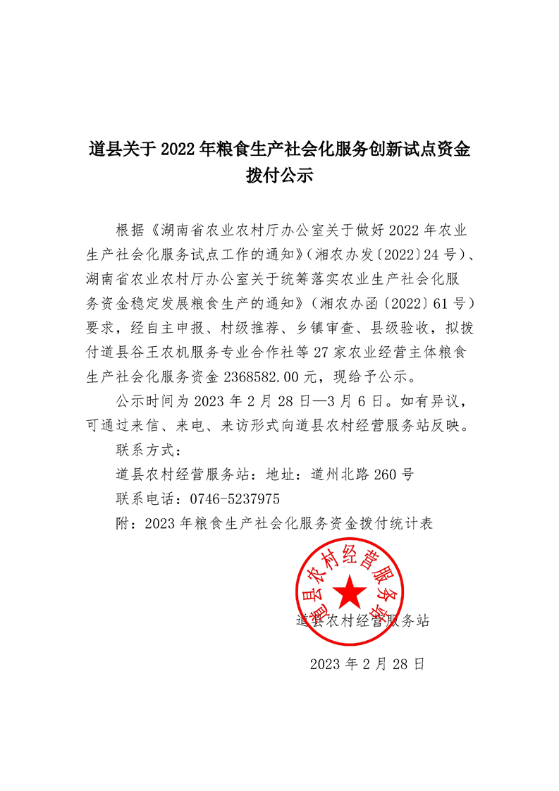 做爱视频关于2022年粮食生产社会化服务创新试点资金拨付公示